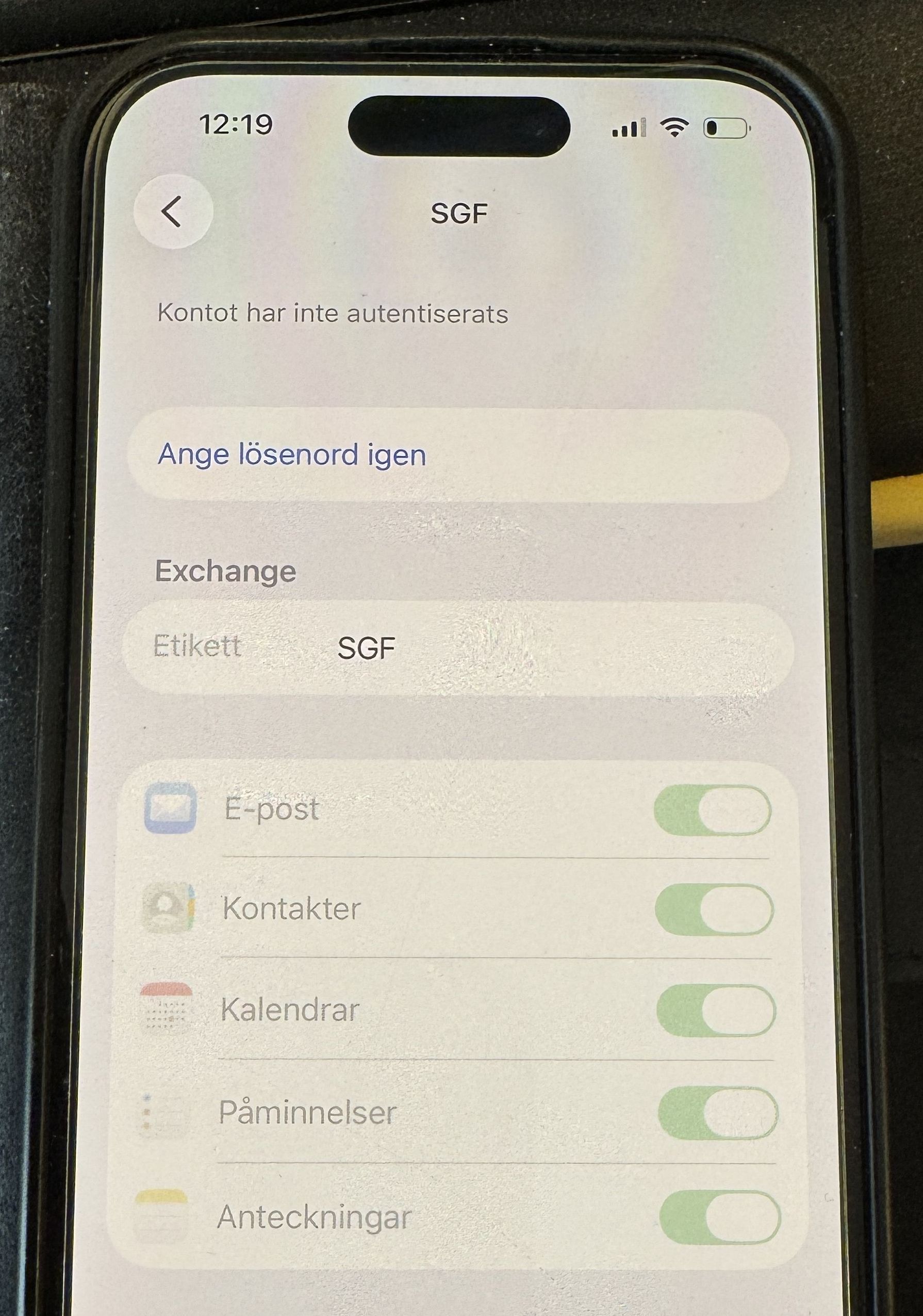Har du en annan mobil/surfplatt med ditt SGF-konto inlagt, så måste du omedelbart byta lösenord där också - samma gäller för om du har andra appar som använder SGF-mailen eller kontakter osv på andra enheter!
