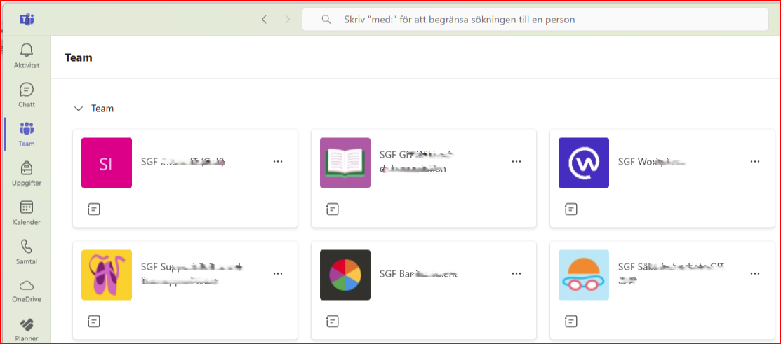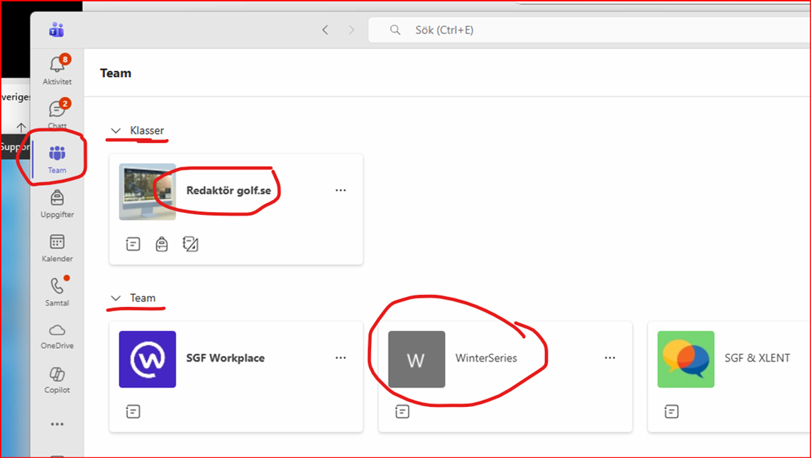 Alla våra "egna team" som vi på SGF har i TEAMS,