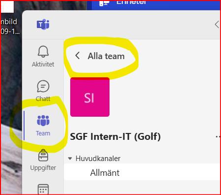 - Om du inte ser alla dina olika "TEAM" direkt (som på bilden nedan till vänster), klickar du på "ALLA TEAM" uppe till vänster (se nedre högra bilden).