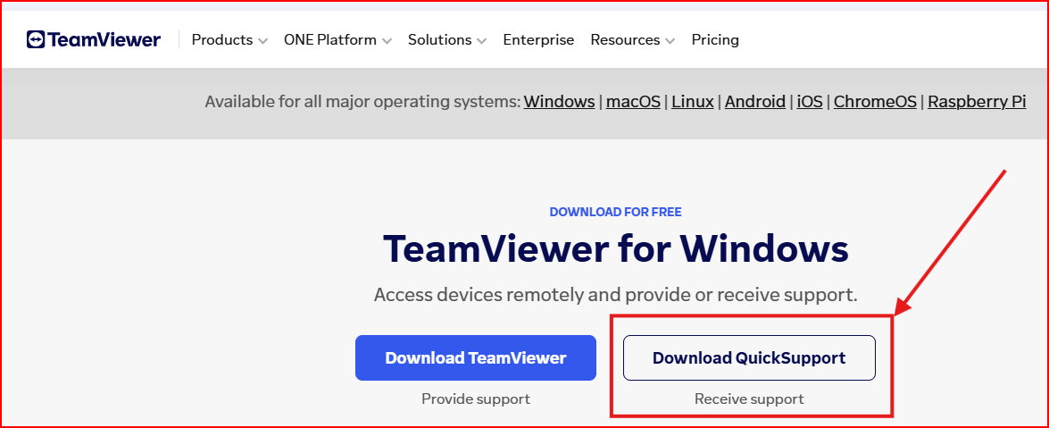 - Ladda ner programmet "QUICKSUPPORT" till höger från TEAMVIEWERs hemsida (se bilden)