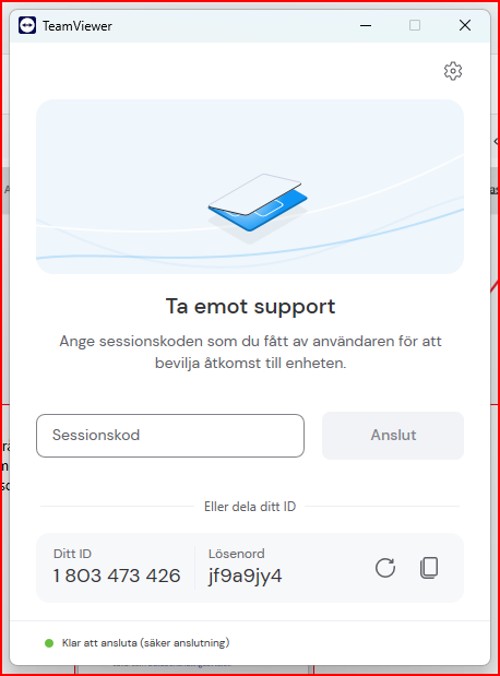 - Förmedla ditt ID-nummer (alltid samma på din enhet) och sedan det slumpmässiga lösenord som ändras för varje support-session.