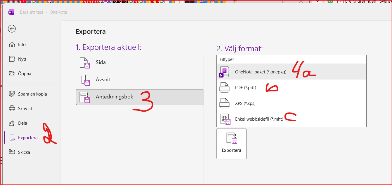 Skapa först en mapp i ONEDRIVE kallad tex "Backup av OneNote 2026"